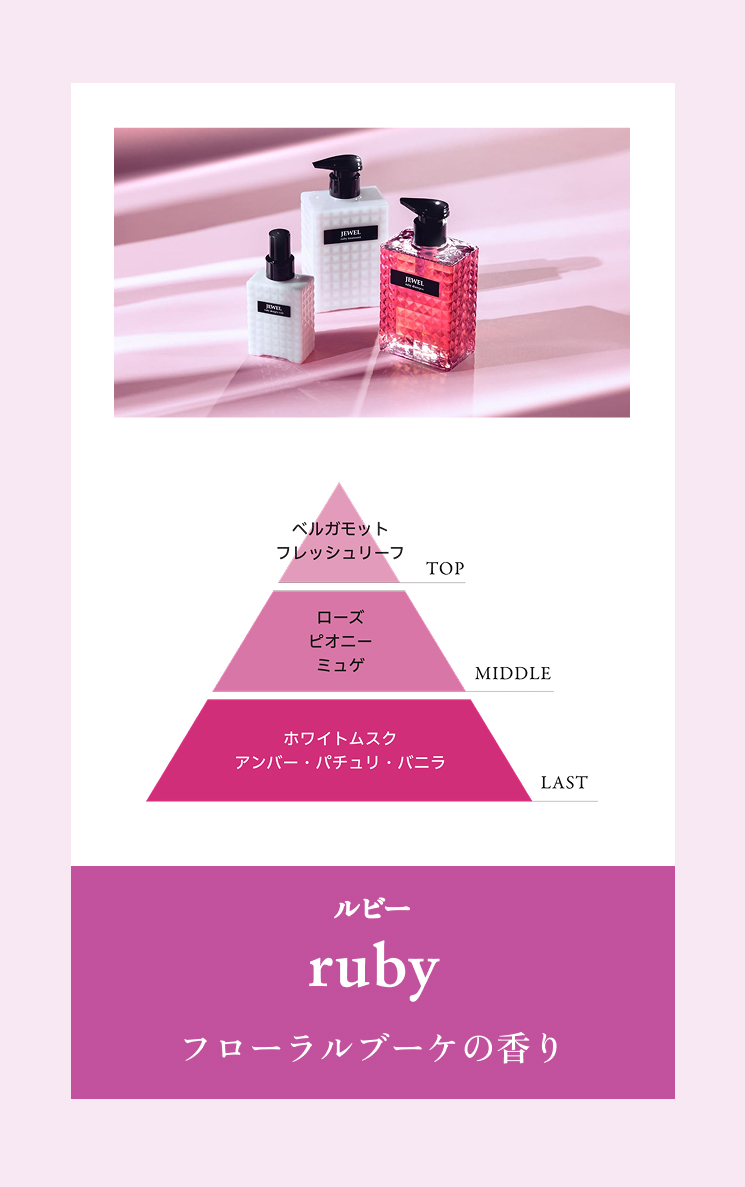 香りに特化したシルキー髪を目指すJEWELシリーズ。